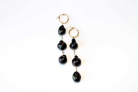 Sterling Silver Paperclip Chain + Black Pearl Carabiner