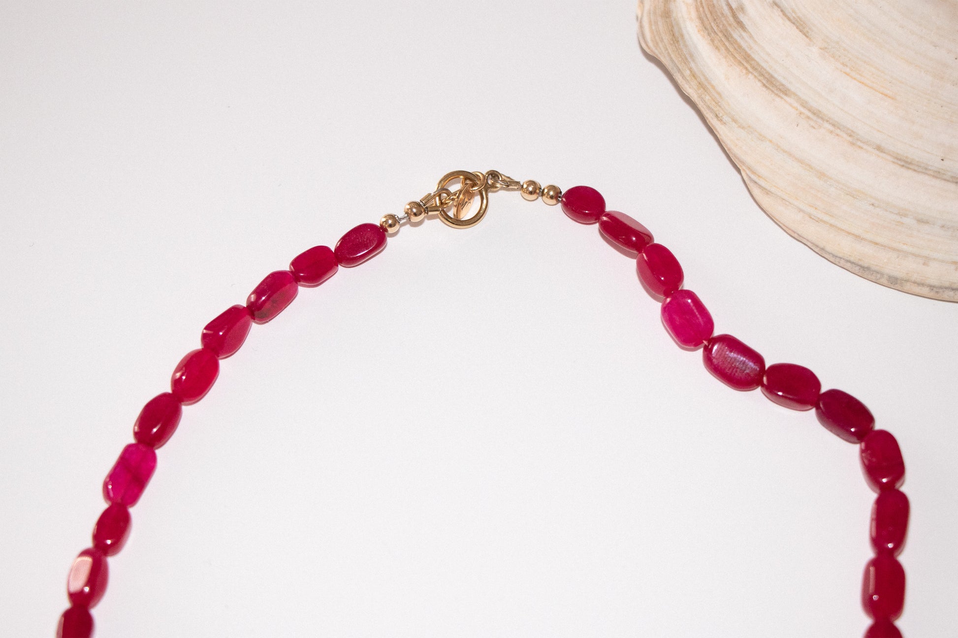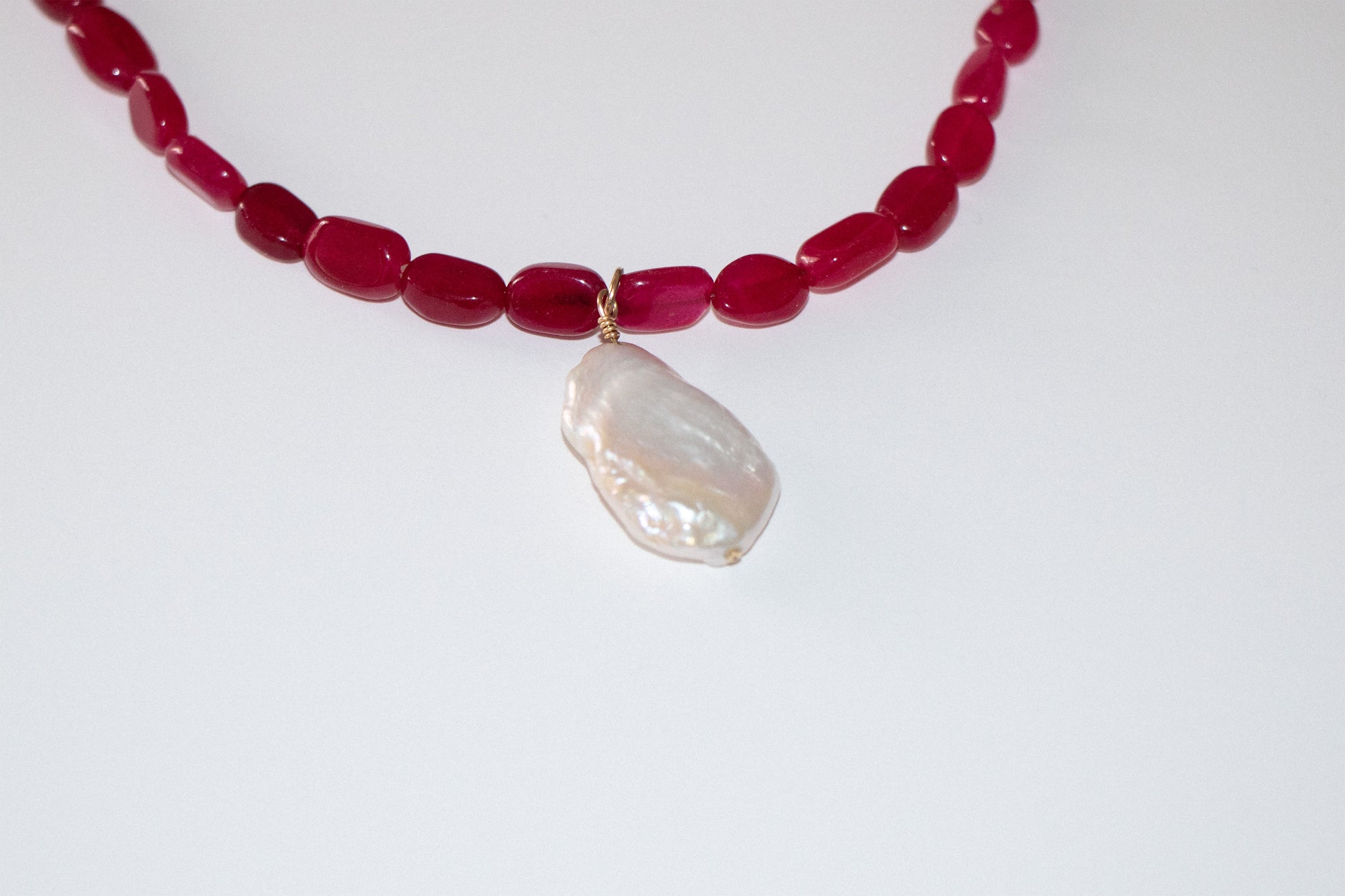 Hot pink dyed aventurine and baroque jumbo coin pearl.