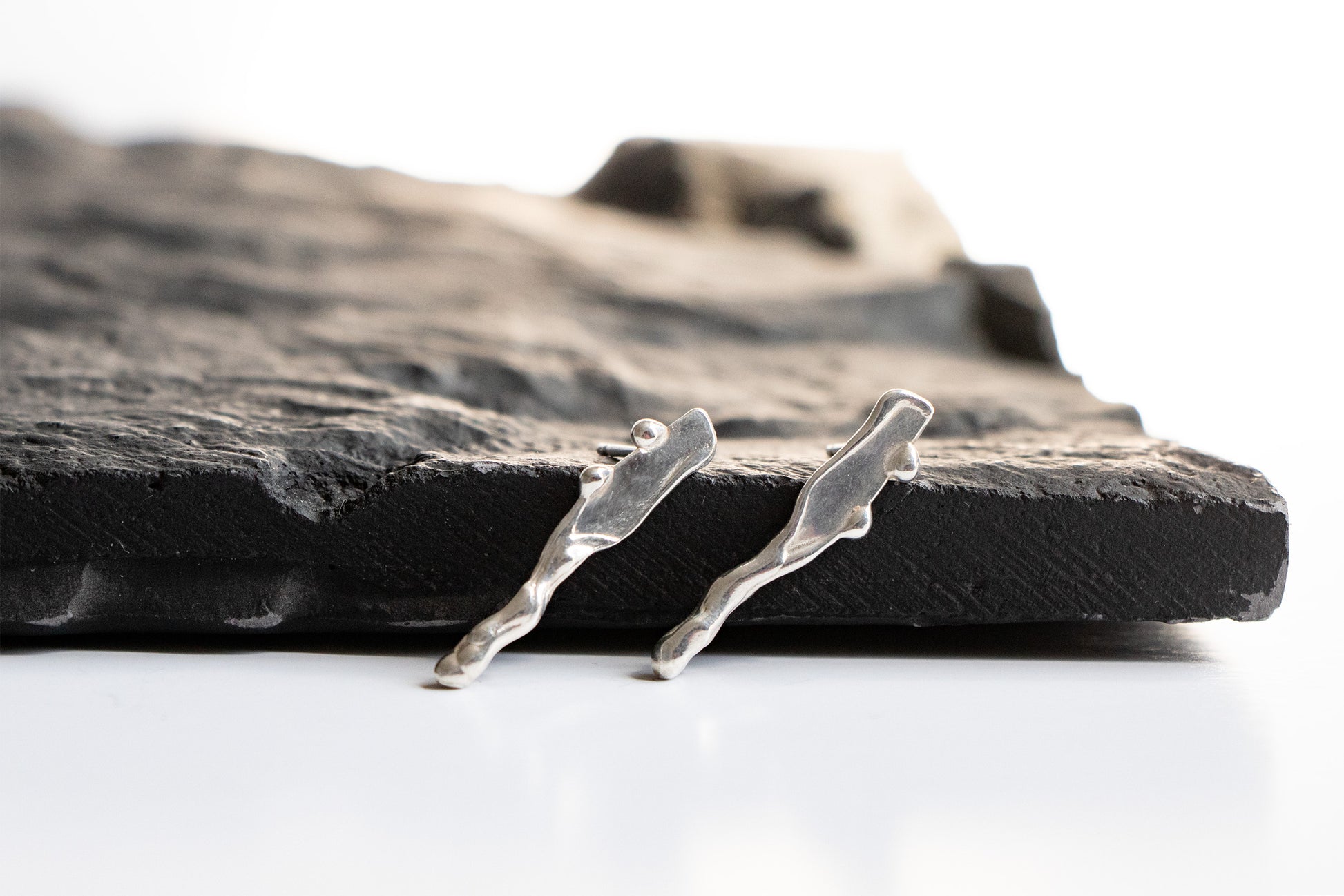 Formed from hot wax, working with gravity to dictate their shape – casted in 925 sterling silver. Sterling Silver posts and backs. Also available in 14k gold.
